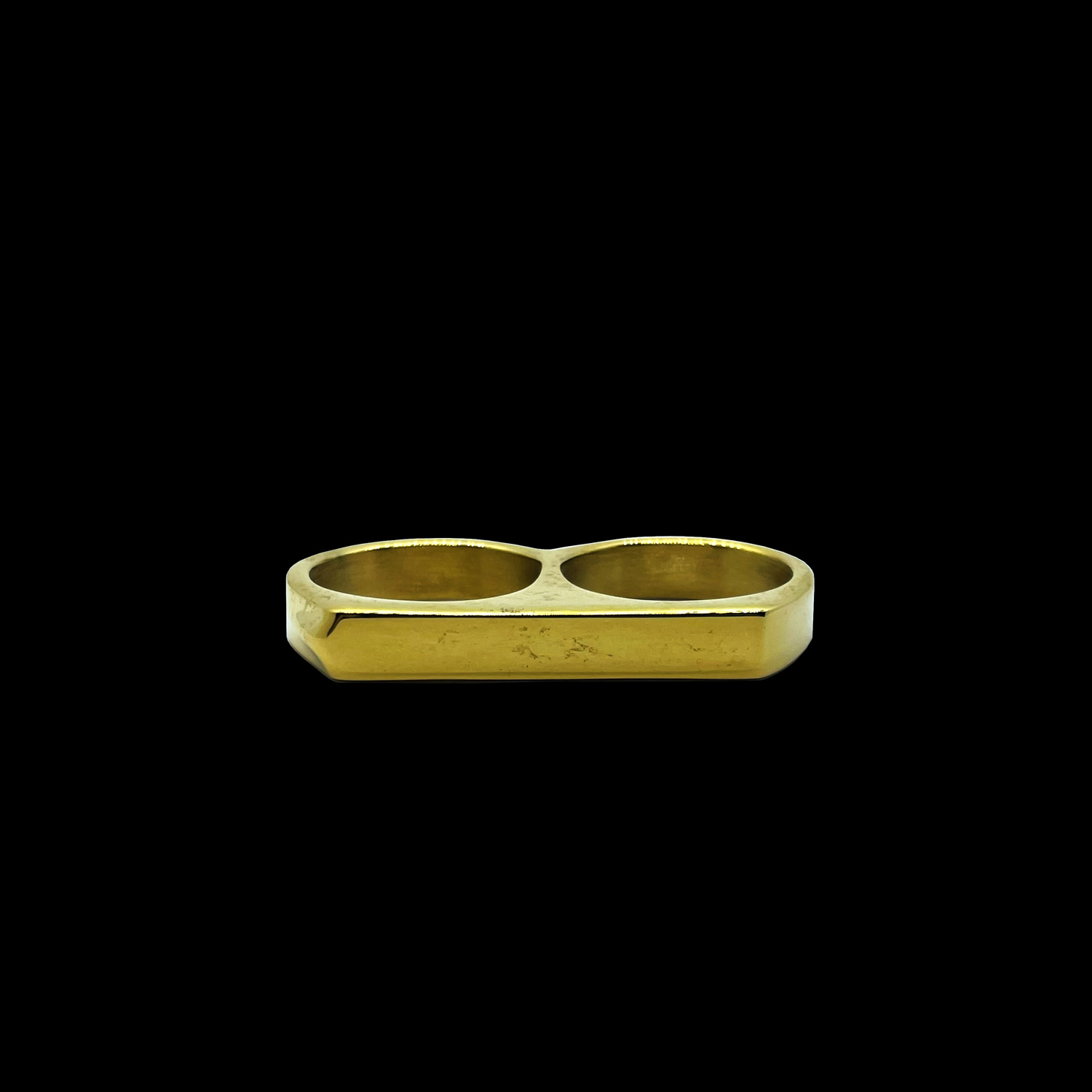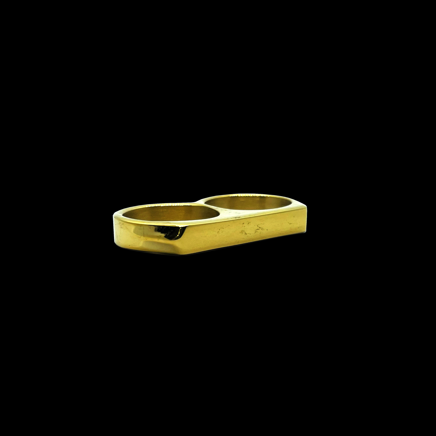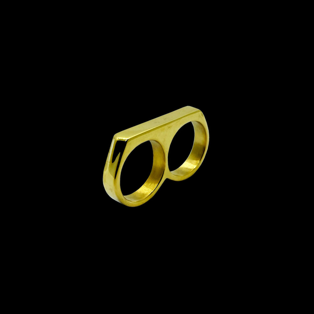 Como su nombre lo indica es un anillo doble minimalista de estilo manopla, para lograr un estilo mas rudo pero a la vez elegante. El material es acero inoxidable 316L de grado quirúrgico, resistente a caídas, agua, alcohol, etc.