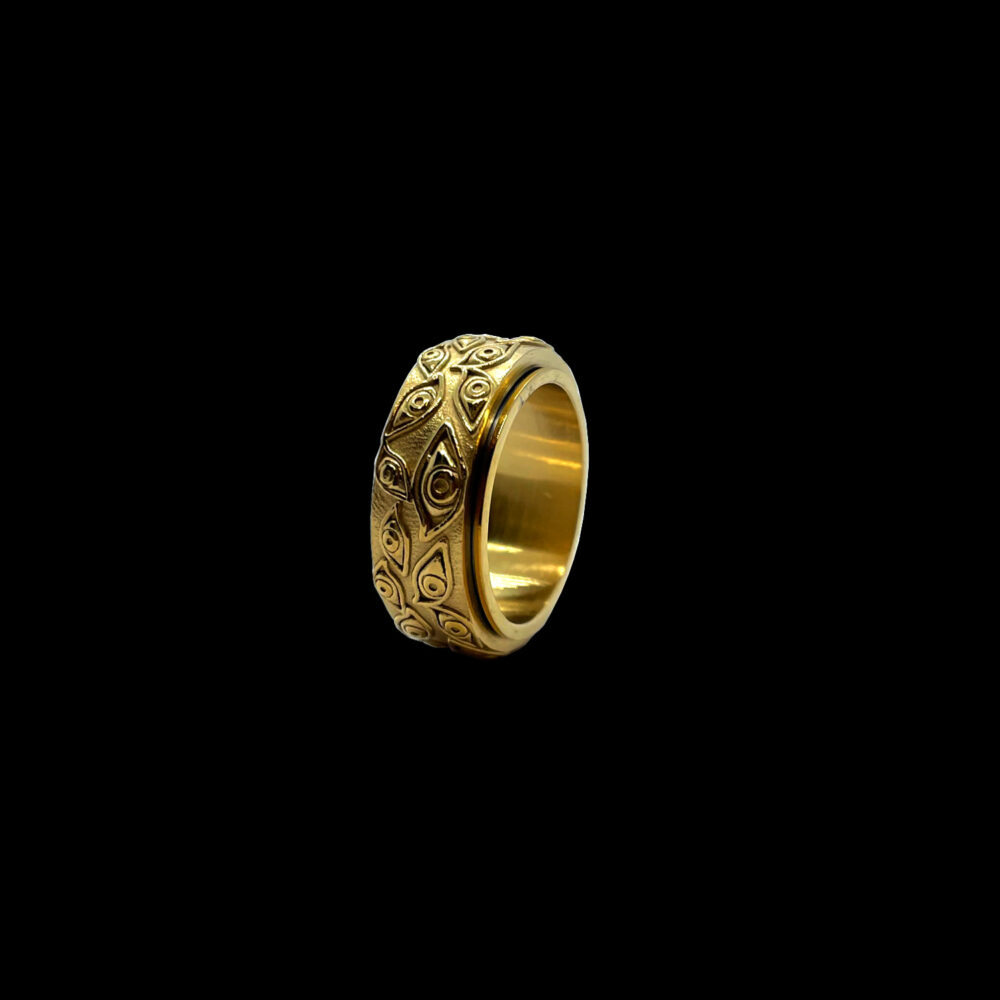 ¿Conoces el “mal de ojo”? Nosotros quisimos creer nuestra propia representación en este estilo tan único y especial, nos recuerda a muchas cosas, incluso a varios pintores famosos pero decidimos volverlo un anillo mas divertido, es por esa misma razón que es giratorio. El material es acero inoxidable 316L de grado quirúrgico, resistente a caídas, agua, alcohol, etc.