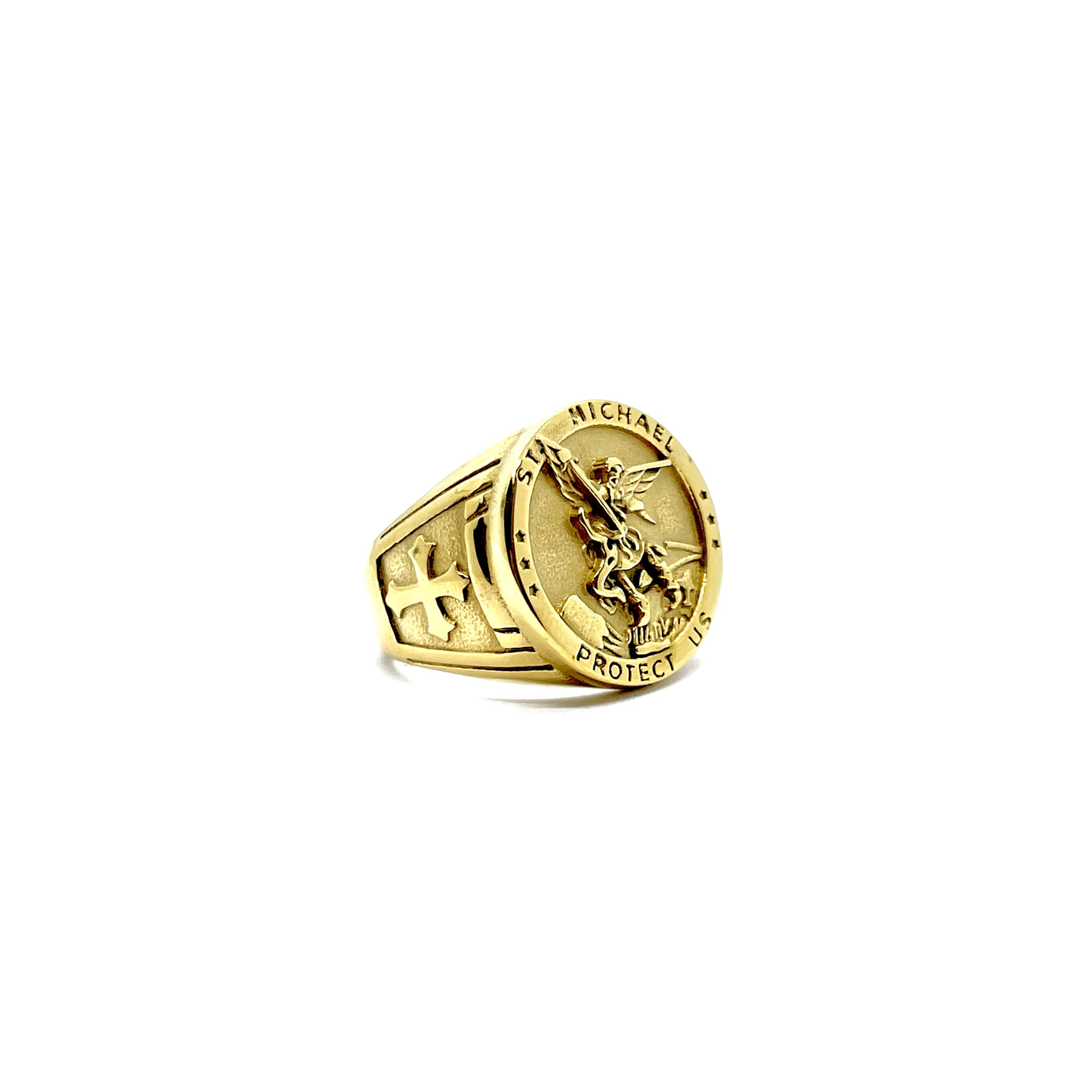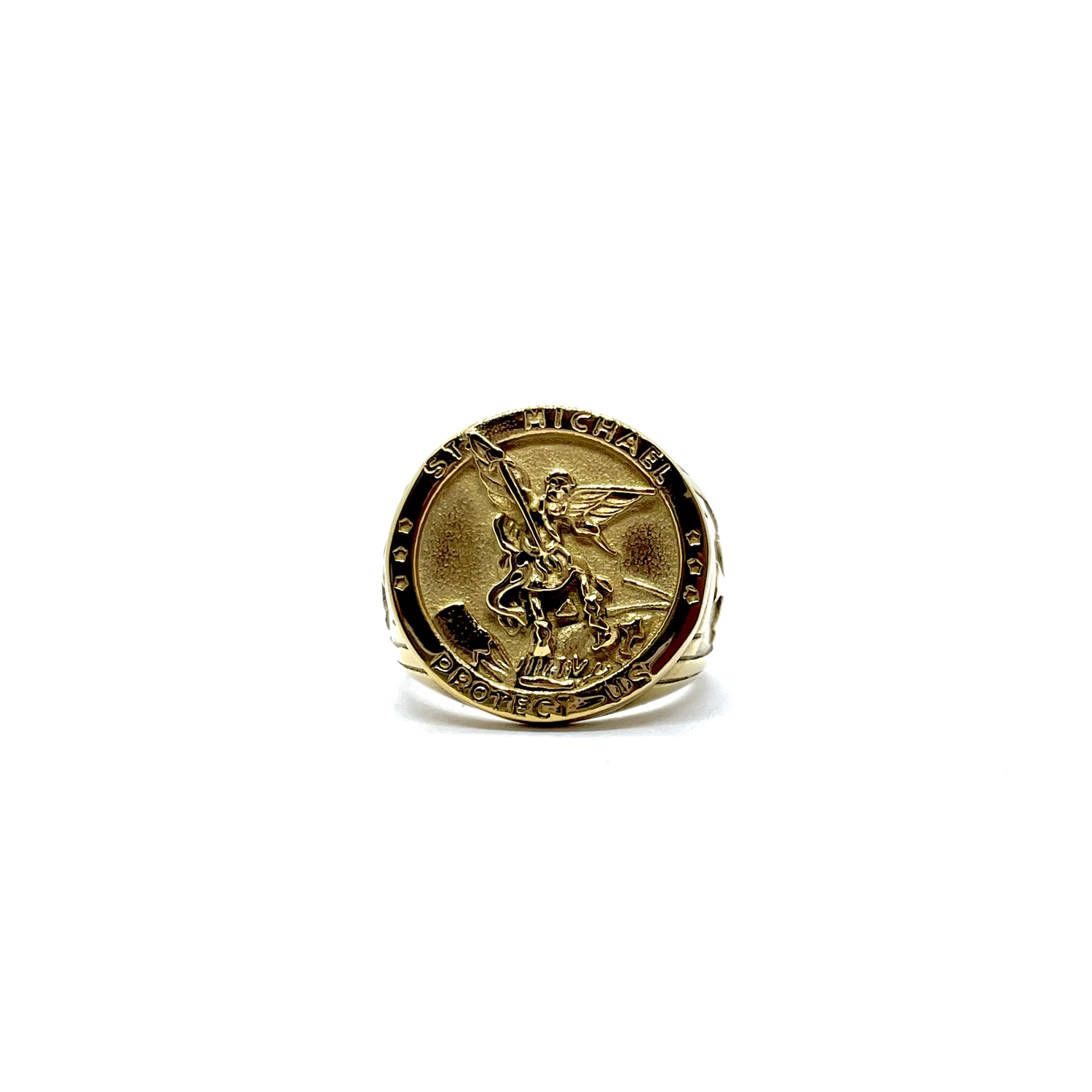 Nos encantan los anillos estilo sello, es por eso que te traemos este anillo muy especial del Ángel San Miguel. El material es acero inoxidable 316L de grado quirúrgico, resistente a caídas, agua, alcohol, etc.