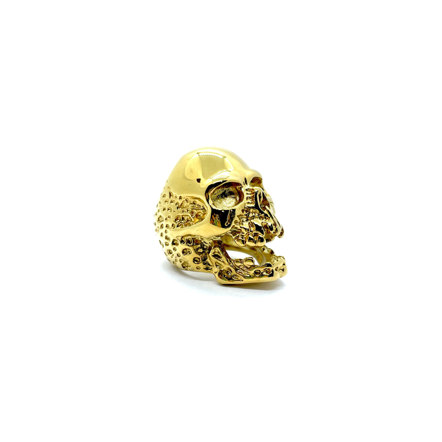 Un anillo muy diferente y unico, siniestro pero no terrorifico. El anillo Skull Siniestro es una anillo grande el cual puedes utilizar solo o acompañado de estilos minimalistas, de color dorado, material acero inoxidable 316L de grado quirurgico, resistente a caidas, agua, alcohol, etc.