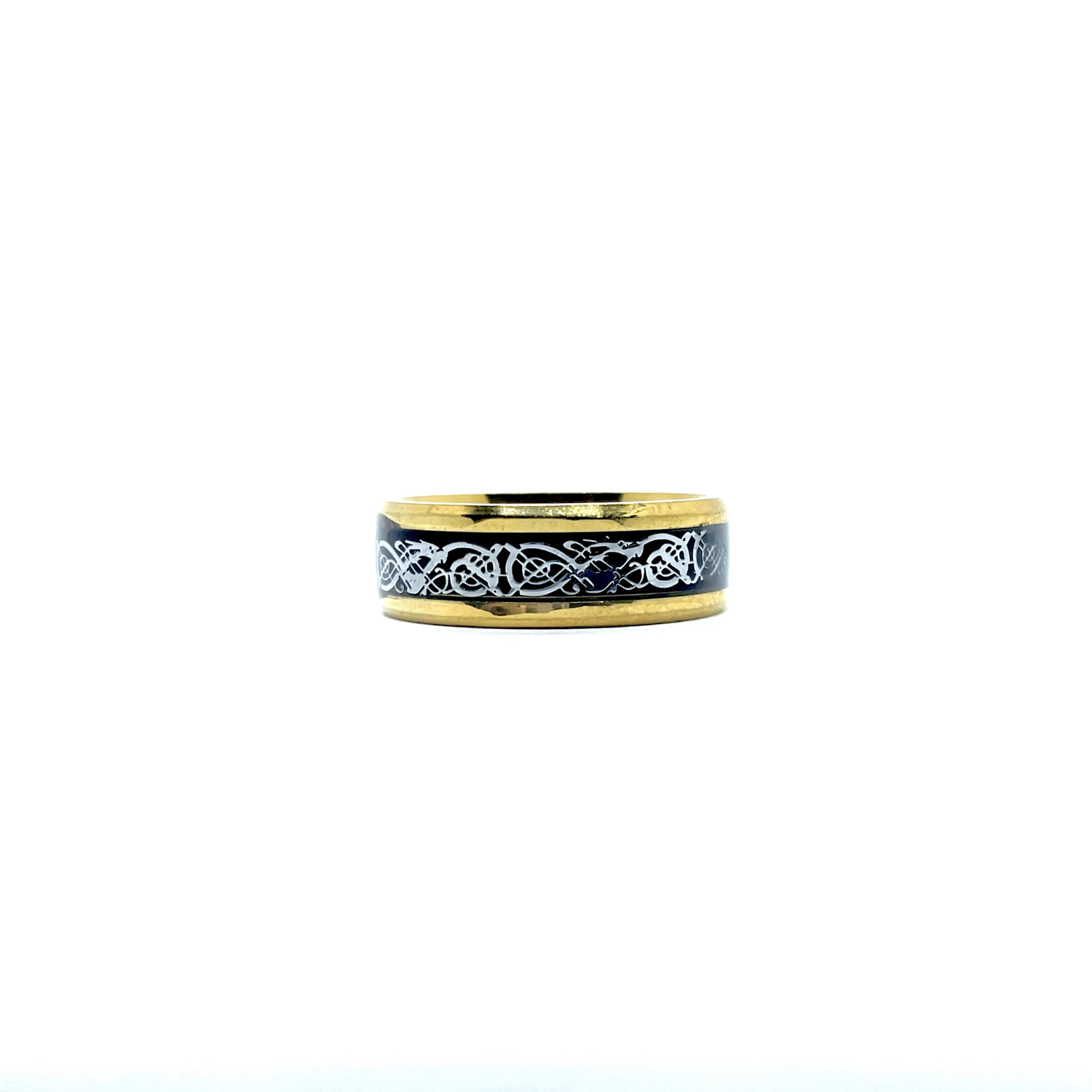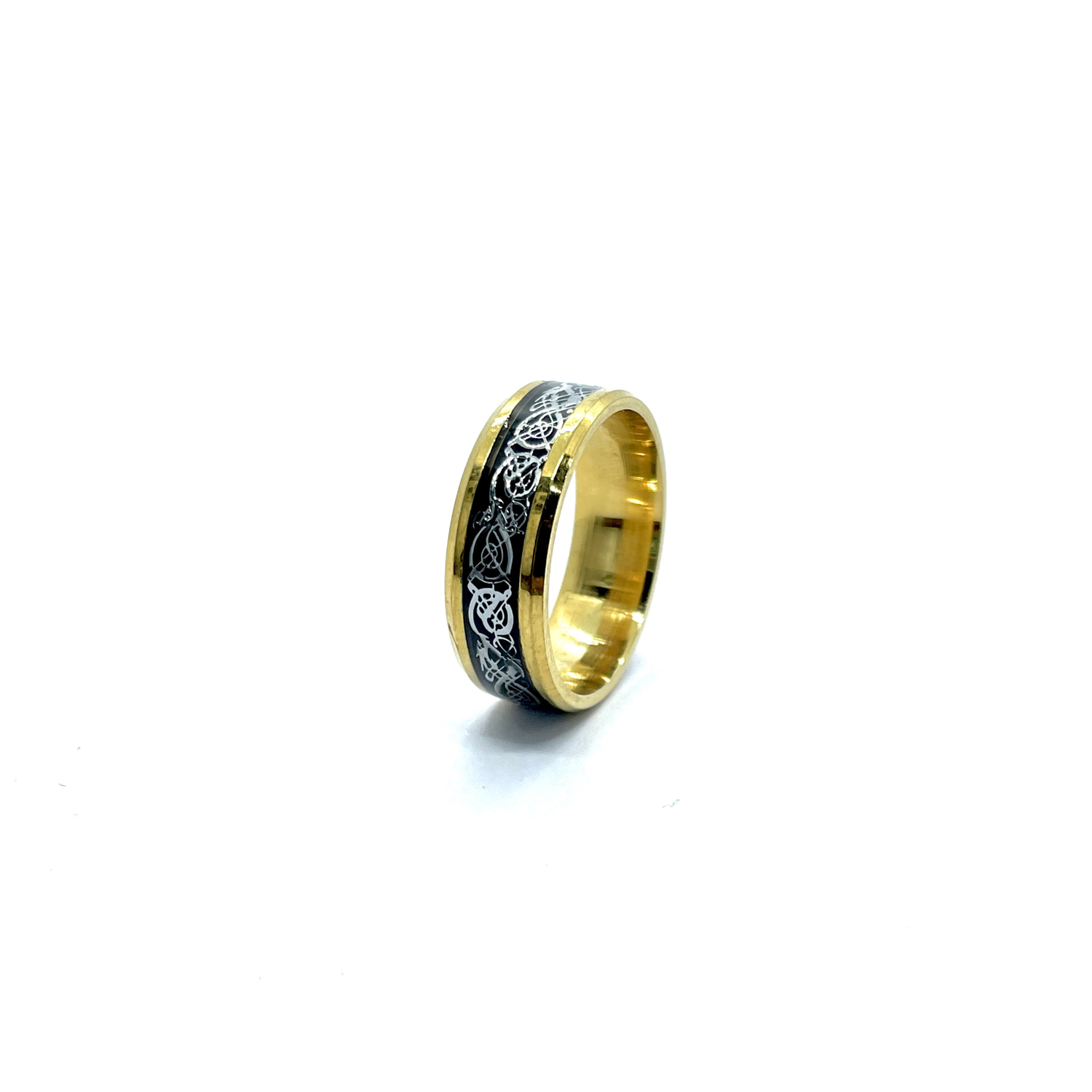 Anillo de tungsteno en variedad de tonos de negro y gris con detalles exóticos en dorado, es una pieza sencilla pero que sin duda llamará la atención a donde vayas, de color dorado, material acero inoxidable 316L de grado quirurgico, resistente a caidas, agua, alcohol, etc.